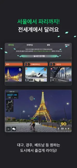 수만 명의 친구들과 함께 달리며 서울, 대구 국내뿐만 아니라 프랑스 파리, 미국 하와이 등 전세계에서 언제든 즐겁게 라이딩하세요.