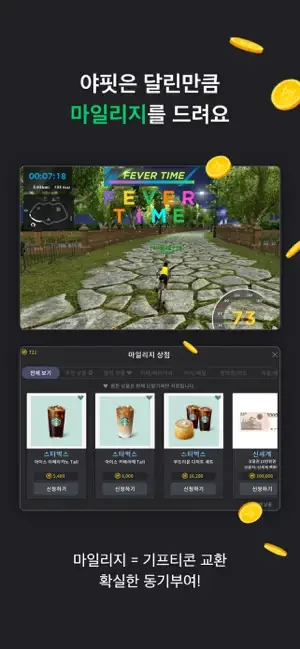 야핏사이클은 달린 만큼 마일리지가 제공되어 매 순간 동기를 부여합니다.