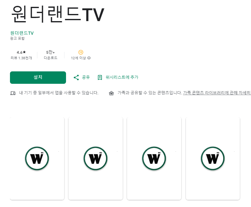 아래는 원더랜드TV 어플에 대한 스크린샷 정보입니다.