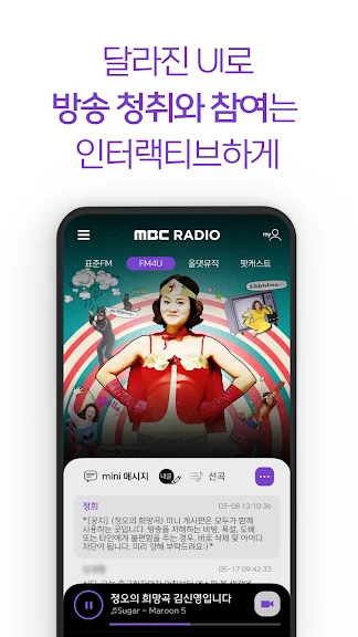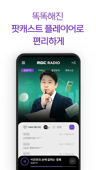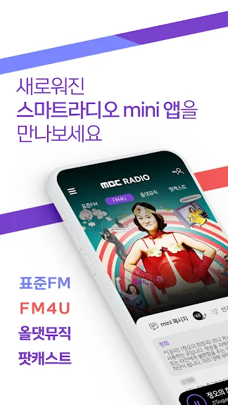 MBC 스마트라디오 mini는 라디오 청취 경험을 혁신적으로 바꿔주는 앱입니다. 실시간으로 표준FM, FM4U, 올댓뮤직 방송을 들을 수 있을 뿐만 아니라, 보이는 라디오로 방송 현장을 생생히 느낄 수 있습니다. mini 메시지와 문자로 방송에 참여하며 소통의 즐거움을 경험하세요.