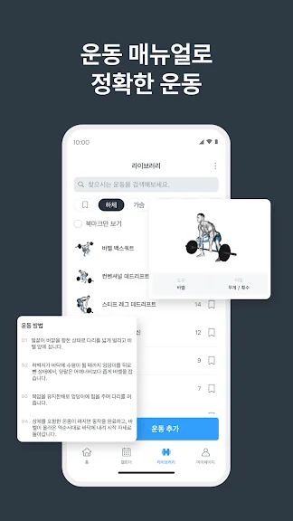• 원하는 운동은 무엇이든 저희 데이터베이스에 추가