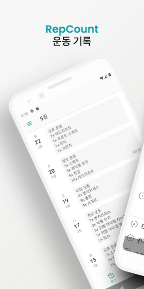 아래는 RepCount - 운동일지, 운동 기록, 헬스 기록 어플에 대한 스크린샷 정보입니다.