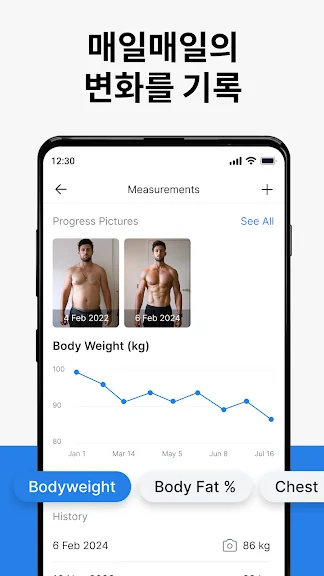 - 운동을 기록, 저장하고 차트를 통해 성장도를 확인!
