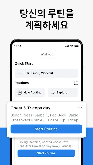 • 고급 루틴 플래너로 당신의 루틴을 계획하고 운동일지를 작성하세요