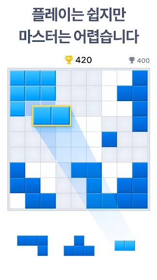 10×10 판에 블록을 드래그 및 드롭하세요