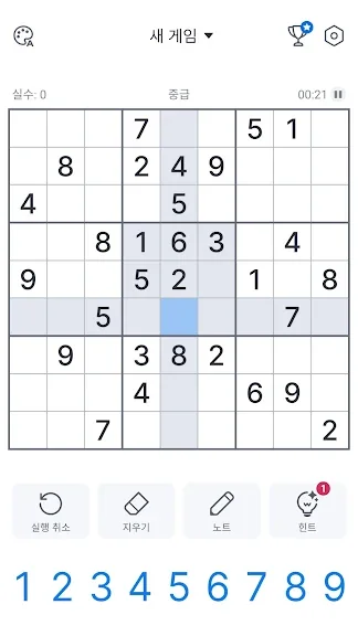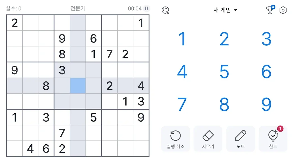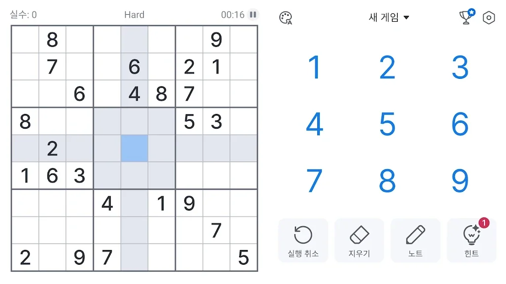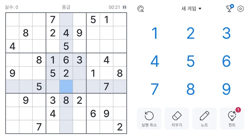 ✓중복 강조 표시 - 행, 열 및 블록에서 숫자가 반복되는 것을 방지합니다.