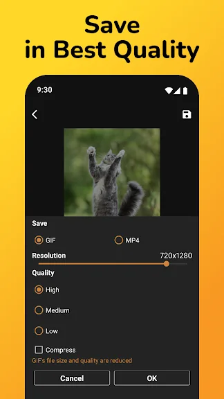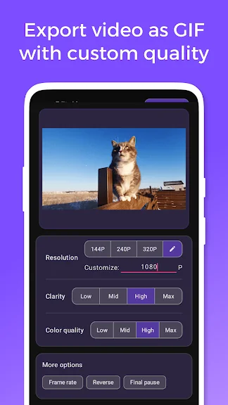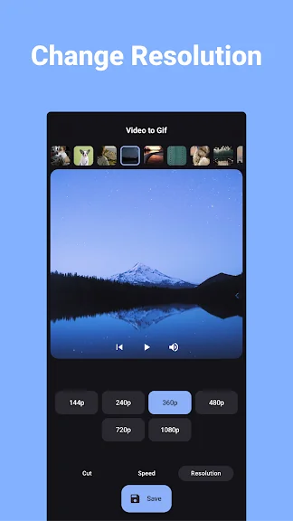 GIF의 해상도를 필요에 맞게 맞춤 설정하십시오. 소셜 미디어를 위한 고품질 GIF 또는 빠른 공유를 위한 작은 파일을 원하든지 간에, 앱이 출력 해상도를 완벽하게 제어할 수 있게 합니다.