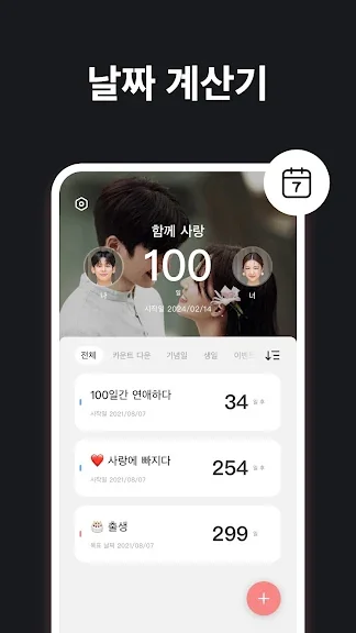 - 당신이 파트너를 얼마나 오랫동안 사랑해왔는지 기억하나요? 관계가 시작된 날짜를 입력하면 앱이 자동으로 날짜를 계산합니다.