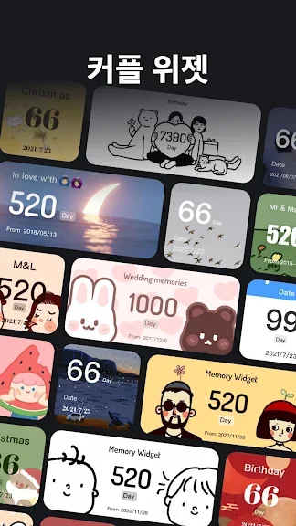 - 홈 화면에서 다양한 위젯으로 사랑하는 사람과의 기념일, 그리고 서로의 생일을 확인하세요!