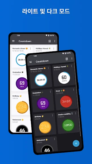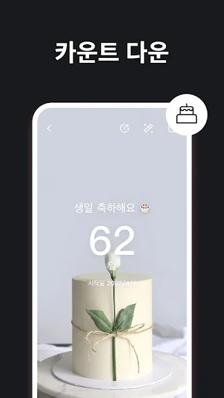 - 다가오는 기념일까지 카운트다운하거나 과거의 특별한 날로부터 카운트업하세요.