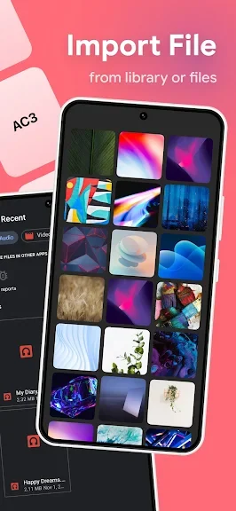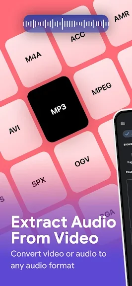 비디오를 오디오로 또는 오디오를 오디오로 변환하는 오디오 변환기 앱은 MP3, WAV, OGG, M4A, ACC, acc 등과 같은 모든 형식을 지원합니다. 오디오를 추출하고 고품질의 나만의 벨소리를 만듭니다.