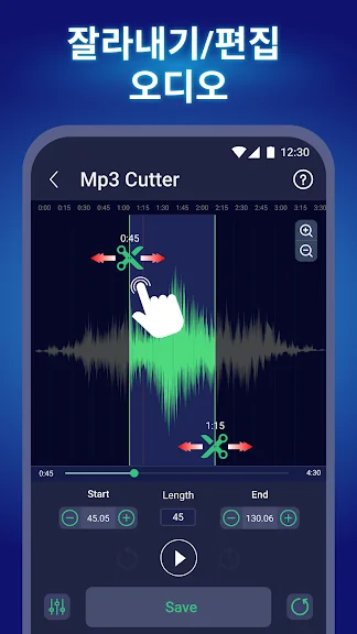 * 오디오 커터: 오디오 파일의 세그먼트를 잘라내어 팟캐스트, 벨소리 또는 알람을 만드는 데 적합합니다.