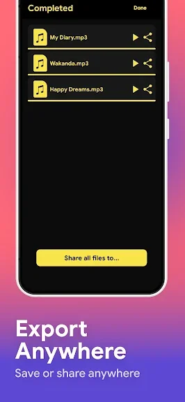 - 오디오 파일을 친구 또는 소셜 미디어를 통해 쉽게 공유하고 업로드할 수 있습니다.