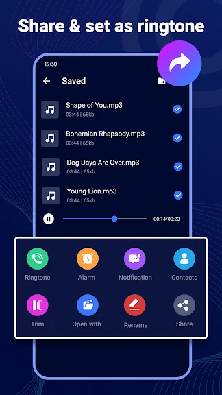- MP3 파일을 벨소리/알림음 및 알람음으로 빠르게 변환한 후 설정을 지원합니다.