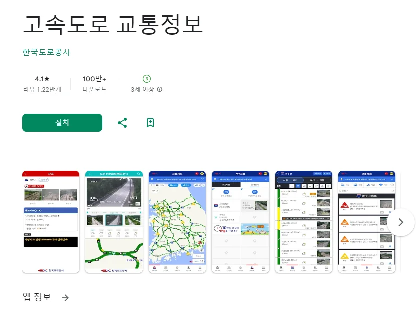 아래는 고속도로 교통정보 어플에 대한 스크린샷 정보입니다.