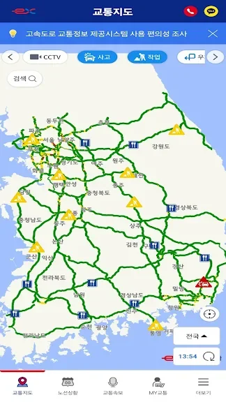 전국 고속도로와 국도의 교통 상황을 실시간으로 확인 할 수 있습니다.