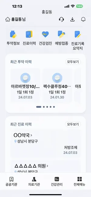 의료기관 및 약국을 방문한 최근 1년간의 진료 내역 조회