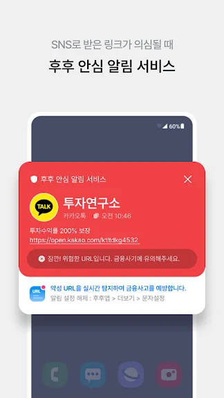 AI로 업그레이드 되어 아직 신고되지 않은 최신 피싱/스팸 번호도 실시간으로 탐지해서 알려주고 자동으로 차단해드려요.