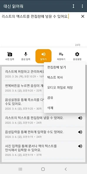 2) 텍스트 음성변환 - 읽어주는 앱 어플 스크린샷