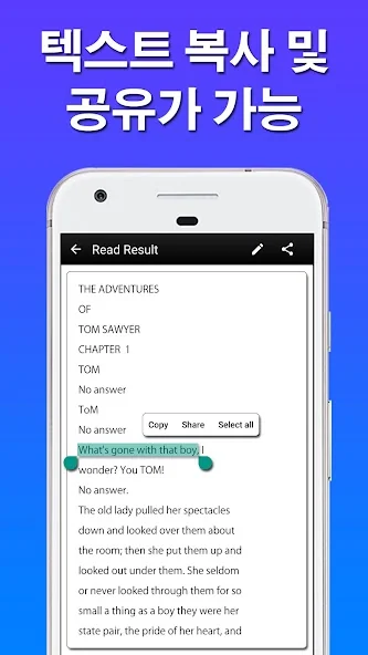 2. 다른 앱에서도 쉽게 텍스트를 복사 할 수 있습니다. 그런 다음 기본 읽기 화면에서 붙여넣고 큰 소리로 읽습니다.