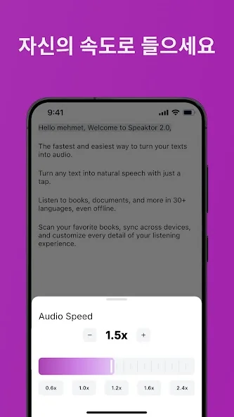 아래는 Speechify 텍스트 음성 변환 오디오 음성화 어플에 대한 스크린샷 정보입니다.