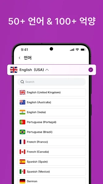 AI 기반의 자연스러운 목소리 제공 (남성/여성 선택 가능)