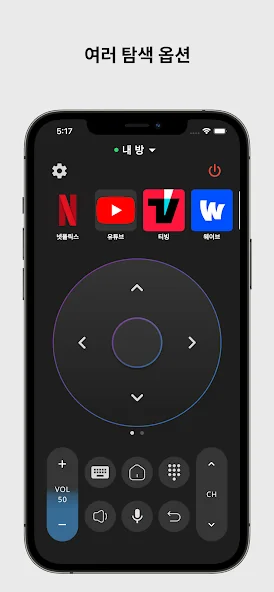 - 간단 리모컨 : 채널 전환이나 음량 조절, 검색 등 간단한 리모컨 기능