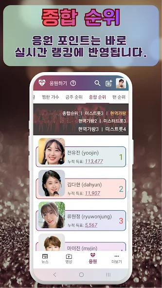 6. 현역가왕3 응원하기 - 응원투표 영상 컨텐츠 어플 소개