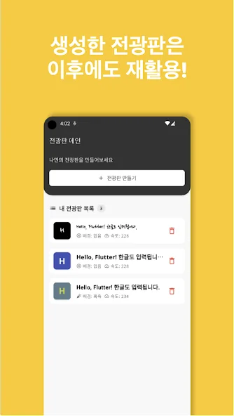 아래는 쉬운 전광판 – LED 응원 전광판 어플에 대한 스크린샷 정보입니다.